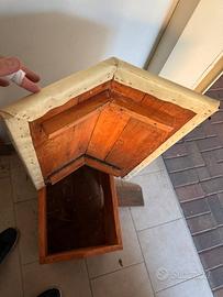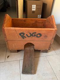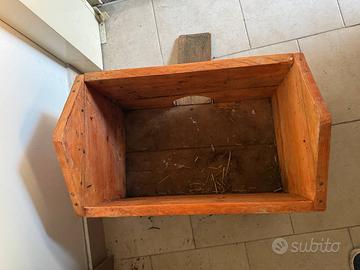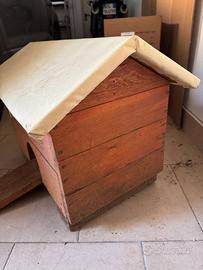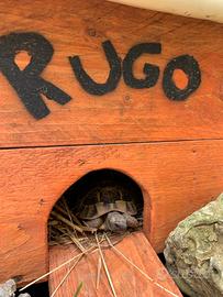 Casetta completamente artigianale costruita in legno, la struttura è solidissima e il peso dovrebbe aggirarsi sui 5 kg onde evitare che il vento possa spostarla. Ho fatto si che il tetto potesse completamente e facilmente essere estratto in modo tale da permetterci di controllare ed eventualmente pulire l'interno. Ha una piccola rampa di accesso in quanto ho preferito lasciarla alzata da terra, onde evitare che potesse trovarsi sommersa di acqua. Le dimensioni sono: Larghezza lato porta: 54,5 cm Lunghezza : 35 cm Altezza con tetto compreso : 46 cm Larghezza porta, che in caso posso modificarvela se la vostra è più grandicella: 13 cm I distanziatori che la tengono sollevata da terra e quindi ne evitano l'allagamento o l'eventuale deterioramento del fondo sono di 5 cm. La mia piccolina la usava per andare a dormire ogni sera e addirittura per il letargo, dato che le lasciavo sempre della paglia dentro nei periodi più freddi e foglie, così che potesse rimanere al caldo e la temperatura non scendesse sotto lo zero. Ovviamente ha la capacità di ospitare 5/6 tartarughe senza problemi Il tetto ha uno strato superiore in PVC onde evitare eventuali infiltrazioni d'acqua. Prima di consegnarvela naturalmente la pulirò a dovere. Per ulteriori foto o informazioni non esitate a contattarmi.
