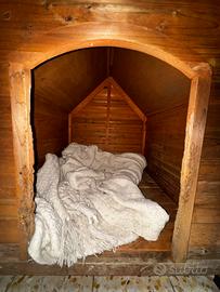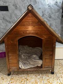 Vendo Cuccia per cani a casetta pagata 300 € molto grande, spaziosa di ottima qualità tutto sommato è messa bene come si vede in foto solo un po’ rovinata all’entrata