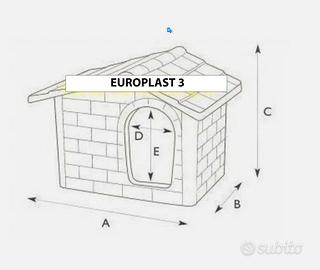 Cuccia KASA - mis. PICCOLA in Super Resina Plastica (PE) Qualità altissima per un prodotto "made in Italy" che durerà negli anni. Questa cuccia dalla classica forma a casa è realizzata in una speciale resina ad alta resistenza, completamente riciclabile ed atossica. Adatta in ambienti estremamente caldi o freddi, sopporta temperature da -65° a +85°. Inoltre è resistente agli urti e ai raggi UV per decenni. Se volete regalare un comodo giaciglio al vostro cane o al vostro gatto, questo modello di cuccia vi assicurerà economicità, pulizia e durata praticamente infinita! Il prezzo più basso che troverete per questo prodotto di alta qualità! Può ospitare comodamente cani di taglia piccola e medio-piccola o gatti di ogni razza. A quale razza è adatta la cuccia Kasa Piccola? Alcuni esempi: barboncino nano |carlino |maltese |pechinese | schnauzer nano | volpino italiano |west highland white terrier | yorkshire terrier... Caratteristiche: - materiali: super resina plastica (PE) di elevato spessore - colorazione: terracotta chiara (prodotto non verniciato) - fondo studiato per essere sempre asciutto e arieggiato - facile da pulire, non assorbe odori o liquidi, massima igiene - fondo rialzato da piedini in gomma: ottima stabilità - resistenza alle intemperie e agli urti assicurata per anni ed anni - prodotto dalla italiana Euro3plast, leader nel settore Dimensioni massime (al tetto, vedi immagine) in cm.: KasaA:65 (53,5*)B:49 (34,5*)C:51 (50*)D:17E:28,5 * misure interne N.B.: misurare l'animale se non si è sicuri che la cuccia sia adatta non accetto resi
