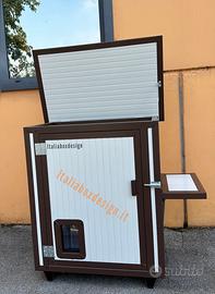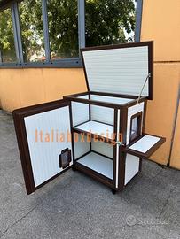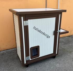 Cucce per gatti super coibentate, realizzate con materiali isolanti con all’interno poliuretano espanso quindi ideali per riparare gli animali dal caldo e dal freddo dall’umidità e dall’intemperie in generale, perché a differenza del legno i pannelli sandwich non marciscono e non hanno bisogno di manutenzione. La cuccia nella foto è realizzata con pannelli di spessore 30 mm anche il pavimento che è amovibile per la pulizia totale, il tetto si può aprire e si può bloccare sia in apertura che in chiusura viene spedita smontata con il kit di montaggio ed è semplicissimo, in pochi minuti si rimonta. Posso spedire in tutta Italia isole comprese