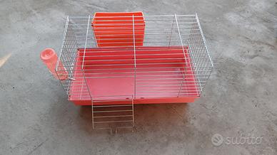 Inoltre ci sono anche una gabbia completa di accessori e un trasportino in tessuto completa di traversa.