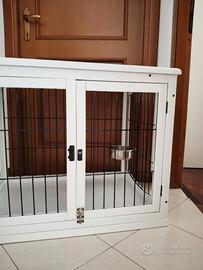 STILE MODERNO E TETTO SPAZIOSO: Questa gabbietta per cani è realizzata in pannelli di legno MDF di grado P2 verniciati color bianco, in modo da essere facilmente abbinabile agli altri mobili di casa. Il tetto della gabbia è ampio e perfetto per posizionare le forniture per il tuo animale.