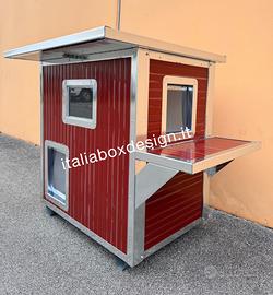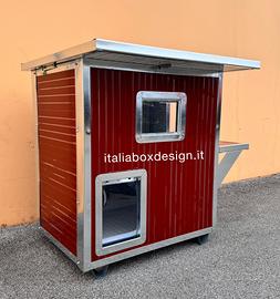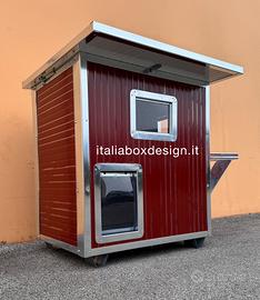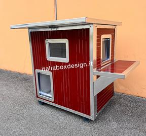 Super cuccia coibentata, la cuccia è realizzata con pannelli isotermici coibentati per garantire il massimo comfort ( caldo/freddo ). Interamente profilata per resistere nel tempo, ed è completa di piedini piuttosto larghi in acciaio inox per non far sprofondare la cuccia se la si mette nel prato. Il fondo anch’esso estraibile per la più completa e facile pulizia, è fatto in coibentato per una migliore insolazione e lo si può lavare per un’igiene sempre al top. Sono tutte apribili ( tetto ispezionabile ) e completamente smontabili, per la spedizione. Lavabili con qualsiasi prodotto casalingo. Questo modello con doppio piano da ai gatti una possibilità in più di giocare.
