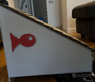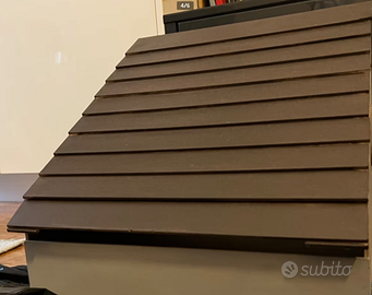 L'ho fatto con del cartone spesso e l'ho dipinto con una tinta per legno. La casa è molto chic, ma non ho spazio nel mio appartamento. I piccoli animali possono entrare, e se ci metti un cuscino, è molto comodo. C'è uno spazio per far respirare l'animale sul retro.