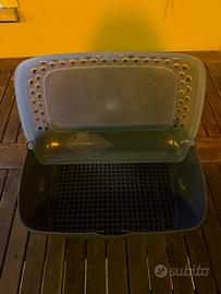 dimensioni: 35x25x20 cm il coperchio si apre e il fondo è forato ottimo come mangiatoia o come lettiera