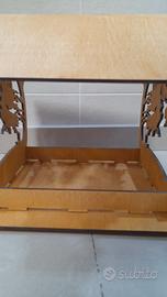 Mangiatoia in legno, adatta per pappagalli/uccelli. Decorazione con dissennatore e cervo (patronus), ispirato alla serie di Harry Potter.