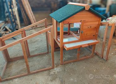 Vendo per inutilizzo una casetta/pollaio per galline. È stata usata per un mesetto, con due galline. In parte è montata, si allegano foto del modello (preso dal web) e dell'articolo in vendita così come si presenta, nel caso posso inviare ulteriori foto se concretamente interessati. Non sono riuscita a caricare subito tutte le foto sul sito.