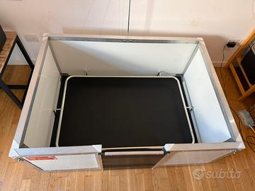 Cassa parto Retex in PVC bordato di alluminio usata per una singola cucciolata (febbraio-marzo 2026) con inclusa asta reggilampada (rimovibile se non necessaria) e tubo antischiacciamento (anche’esso rimovibile). Lunghezza 140cm - profondita 100cm - altezza 50cm. Ingresso regolabile in altezza con tavole di fenolico trattato rimovibili. Di facile montaggio: ad incastro con quattro ganci angolari (saranno incluse le istruzioni in ogni caso). Solo consegna a mano su Padova e provincia: 420€. Se interessati: includo a 30€ riflettore con lampada ad infraossi philips già montata (acquistati a parte).
