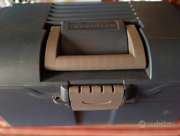 cassetta colore blu contenente n 10 articoli per la cura del cavallo come da foto.
