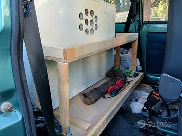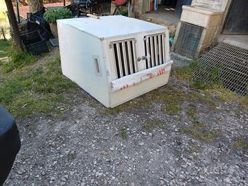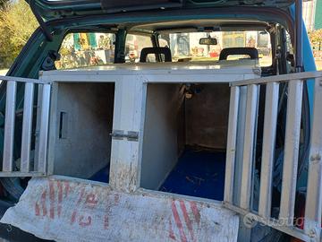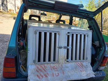 Cassetta/trasporto per cani adatta per fiat panda (modello vecchio ), entra anche nel suzuki jimni, costruita quasi interamente in materiale coibentato, con divisorio centrale. Dimensioni base 93x90, tetto 80x90, altezza 63