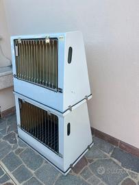 vendo anche singolarmente cassetta trasporto cani macchina misure la grande lunghezza 98×profondità ×altezza65 la più piccola lunghezza 88× profondità 42×altezza 65 prezzo 150 €la più grande perché un pochino usata 200€ la più piccola perché nuova comunque il prezzo trattabile