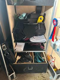 Vendo cassone di equitazione in buone condizioni. Il cassone è stato utilizzato ma si presenta ben tenuto, con normali segni di usura che non ne compromettono la funzionalità. Composto da: •un portasella interno e un portasella esterno •due appendi testiera •un cassetto grande e un cassetto piccolo •vari scompartimenti utili per organizzare tutta l’attrezzatura