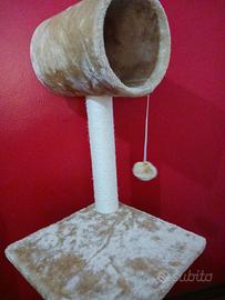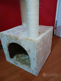 Vendo Castello tiragraffi per gatti praticamente nuovo, tiragraffi verticali in corda, ripiani e casetta in peluche col beige, h 125 cm, ripiani quadrati cm 26, ritiro a Pordenone