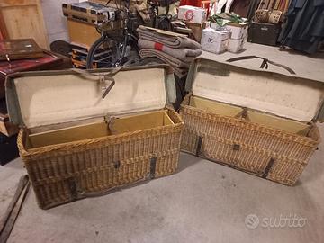 Cestoni da basto in vimini con coperchio in tela cuoio ex esercito svizzero disponibile la coppia e un singolo prezzo cad. misure 87x20x40h