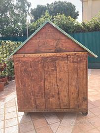 Casetta in legno massiccio, fatta a mano, coinbentata , su ruote facilmente spostabile; misure alt. 115, profondità cm. 82, largh. cm. 115 .
