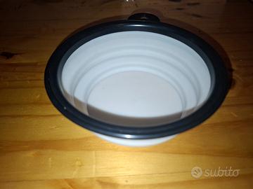 Vendo per inutilizzo ciotola in silicone pieghevole per cani e gatti con moschettone per aggancio Diametro 13 cm