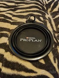 Ciotola pieghevole per cani della Purina Pro Plan, ideale per i viaggi. È in ottime condizioni ed è perfetta per portare l'acqua o il cibo del tuo amico a quattro zampe.