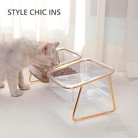 ASPETTO CHIC - Le ciotole per gatti hanno un aspetto molto carino con uno stile INS chic. La struttura in ferro dorato e due ciotole in ABS trasparente di alta qualità, sono belli e sani.