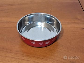 Due ciotole in acciaio inossidabile, con fondo antiscivolo, per cani o gatti. Acquistabili singolarmente (15 €) o in coppia (30 €). Condizioni perfette. Lavate con aceto e acqua bollente. L'acciaio garantisce la durata; il fondo antiscivolo impedisce all'animale di spostare in giro la ciotola. Diametro 17cm. Altezza 5cm