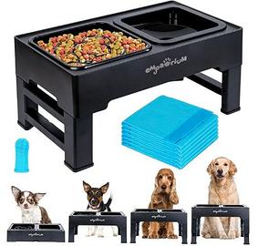 Empawrium 2 Ciotole per Cani Rialzate, Anti Ingozzamento e Ciotola Acqua Antigoccia 1600ML - 4 Altezze, Adatto per ogni Taglia di Cane Piccolo, Medio e Grande - Con 6 Traversine