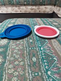 per inutilizzo vendo come da foto bottiglia da viaggio con foglia in silicone che si trasforma in ciotola. INOLTRE REGALO PORTABOTTIGLIA TERMICO PUÒ CONTENERE FINIO A BOTTIGLIE DI 2 LITRI tipo coca cola, Fanta, ecc . 2 ciotole da viaggio in morbido silicone richiudibili che occupano pochissimo spazio e sono indistruttibili, quella blu da circa 600ml quella rossa con bordo di rinforzo circa 350 ml. si possono utilizzare per crocchette, acqua o altro cibo per cani o gatti. ottimi per viaggi, escursioni, passeggiate, ecc. nuovi mai usati, vendo per inutilizzo. potrebbero essere anche un'ottima idea regalo. 7 euro a ciotola e 15 euro per la bottiglia. in blocco 25 euro.