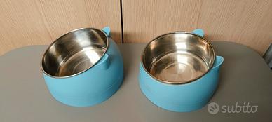 Ciotole per gatti, lievemente oblique e molto capienti.