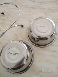 Ciotole per gatti Zoofari , in acciaio satinato internamente e lucido fuori. Con supporto per appoggio. In ottimo stato, vendo a Euro 12,00