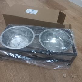 Ciotole Rialzate per Cani con Struttura in Metallo – Doppia Ciotola Acciaio Inox Estraibile 38×18×10,5 cm, Design Elegante e Igienico