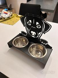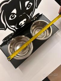 Ciotole rialzate con cagnolino disegnato. Tutto in metallo. Pari al nuovo. Vendo per inutilizzo.