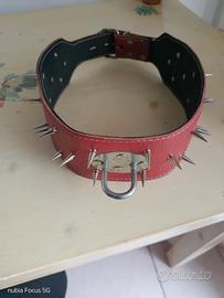 come da foto collare in cuoio e pelle rossa ..con borchie lunghe..molto bello mai usato..x cani giganti ..come mastino ,alano cangal, american bulli extra large corso..ecc ecc. non perdi tempo,non scambio non tratto il prezzo. e non e in regalo...