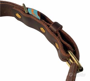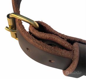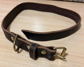 TAGLIA PELOSO: Medio – Medio Grande Materiale: Puro Cuoio – Made in Italy Manifattura e materiali: Made in Italy COLLARE: Fisso, NO Strozzo Colore: MOGANO CHIARO Dimensioni Collare: Diametro regolabile da 53cm a 70 cm – Larghezza 2,5 cm -spessore 1 cm Taglia Peloso – dai 25kg in su. Interamente fabbricato a mano in Italia Finiture in Ottone sabbiato Nuovo mai usato