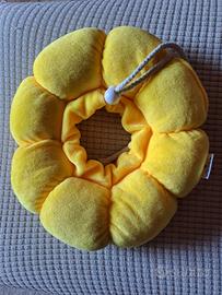 Vendo, per acquisto taglia errata, morbido collare tipo elisabettiano per gatti a forma di fiore giallo.