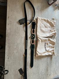 Vendo set Malucchi originale composto da collare e guinzaglio in pelle di vitello nera, con dettagli in cristalli Swarovski oro.