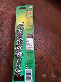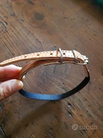 Vento un guinzaglio con catena della Purina Friskies nuovo ancora nella confezione originale ed un collarino per cani di piccola taglia con apertura in pelle per far incidere il nome o indirizzo/recapito telefonico, mai usato anche lui.