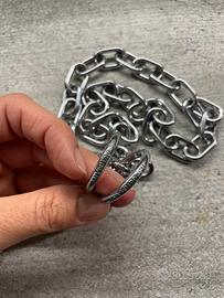 Collare Herm Sprenger acciaio inox con anelli ovali maglia corta (2,6cm) spessore 3,4mm, lunghezza totale 75cm, vendo per acquisto taglia errata, usato un paio di volte, chi conosce il prodotto sa che è indistruttibile quindi è pari al nuovo. Lo spessore maglia garantisce sicurezza anche per cani oltre 50kg, la lunghezza è ideale per circonferenza collo da 60cm in su.