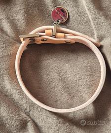 Collare in pelle per cani, fatto a mano, adatto a taglie s/m, colore beige chiaro. L'interno è leggermente scamosciato. Misure come da foto (se ve ne servono altre contattatemi pure in chat.) Mai utilizzato.