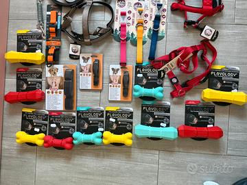 Vendo lotto di articoli per cani tutto nuovo, collari, guinzagli, pettorine, guinzagli regolabili, giochi per cani, collari anti abbaio ecc, in totale sono 35 pezzi del valore 1280 euro, valida la spedizione oppure ritiro a mano zona ancona