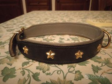 Collarino in pelle nero con stelline dorate per cane. Larghezza 2,5cm, Lunghezza 46cm. Nuovo.