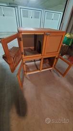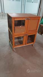 Vendo conigliera usata ma in ottime condizioni. Può contenere uno o due conigli di taglia media. Due piani collegati da rampa. Zona notte al riparo dalla luce. Mangiatoia per il fieno. Ripiani a cassetti estraibili per una comoda pulizia. Ampio spazio per i pellet.