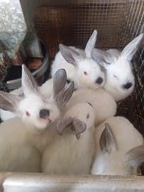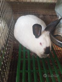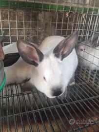 vendo coniglio californiani in purezza piccoli dai 40 a50 giorni allevatu in gabbia con mancini specifici (C3 veronesi ) prezzo non trattabile per singolo esemplare ma per tutta la nidiata si può trattare prezzo cada uno 20€