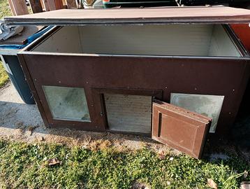Bello e comodo cassone coibentato per animali, realizzato su misura da ditta artigianale. La parte superiore si apre totalmente per favorire la cura degli animali alloggiati e la pulizia del contenitore. La comoda apertura frontale consente di lasciare libero accesso agli animali o di rinchiuderli. Misure esterne cm. 147x103x75h. Misure interne cm. 138x93x66h. Misura luce apertura frontale cm. 35x35. Non si spedisce. Visone ed eventuale ritiro solo sul posto. rifugio tana casetta casottino riparo cuccia gabbia contenitore recinto cane cagnolini conigli roditori pulcini ecc.