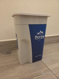 Vendo contenitore porta-croccantini Monge in ottime condizioni: plastica resistente, coperchio aderente che aiuta a mantenere i| cibo fresco e lontano dall'umidità. Design pratico e compatto, facile da pulire e perfetto per chi ha animali domestici e vuole organizzare la dispensa con ordine,