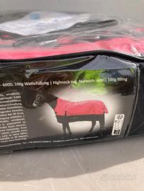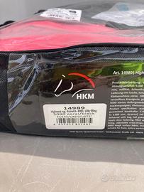 Coperta da paddock HKM con nuca, impermeabile, 600D, imbottitura 100g, cinghe incrociate sottopancia, cinghie in metallo sul petto, cinghe sottocoscia elastiche, ampio paracoda. Nera e rosa. Comprata da Selleria la Colombaia a ottobre 2024 (prezzo 75 euro), usata solo per un qualche settimana all'inizio dell'inverno e in primavera, lavata tramite Decathlon (ancora nella busta della lavanderia). Con borsa originale. La coperta è in ottimo stato, praticamente nuova. È ancora nella busta della lavanderia, se interessati la apro e controllo eventuali difetti. Purtroppo non mi serve più dato che la mia cavalla è mancata recentemente all'età di 32 anni! Consegna a mano anche a Trento e dintorni, lungo la A22 in direzione Modena, zona Reggio Emilia, Parma e Ferrara.