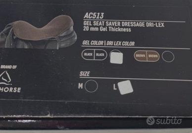 Vendesi Copriseggio in gel e dri lex per sella inglese da dressage marca Acavallo Colore Nero taglia L per selle con seggio da 17,5" a 18,5" Gel da 20 mm supporta la parte superiore del corpo del cavaliere stabilizzando la sella e riducendo significativamente la commozione cerebrale nella parte bassa della schiena Atichetta e confezione ancora agganciati