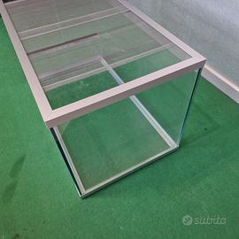 Terrario tecnologico con profili in alluminio anodizzato, griglie di aerazione e vetri scorrevoli. Misure: 80 x 45 x 46 h Cm