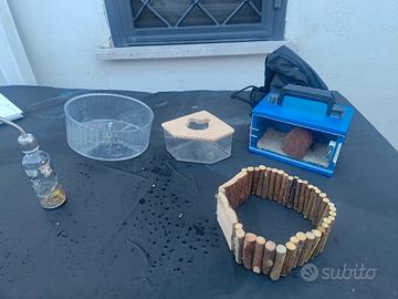 vendo per inutilizzo come nuovi ruota 22cm beveraggio, vaschetta con tappo per sabbia, trasportino con plaxglass molto bello , rampa piegabile