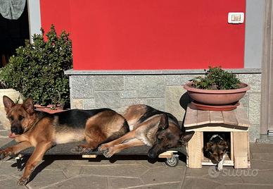 Le chiamo cucce Green perché sono fatte con Materiale di Recupero ( Legno) perché tutto si può riutilizzare... Le costruisco per la mia compagna che ha Allevamento di Gatti Siberiano e Cani... Quelli in foto sono 2 esempi di cucce Cane e per Gatti...