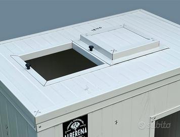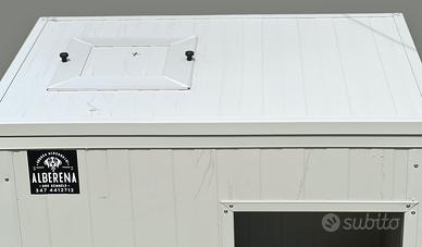 COSTRUISCO SU MISURA bellissime e pratiche cucce per cani in materiale coibentante-isolante /pannelli sandwich. I pannelli sandwich hanno al loro interno un materiale altamente isolante quindi le mie cucce sono l'ideale per riparare gli animali dal caldo,dal freddo,dall'umidità e dalle intemperie in generale. Perfetta per privati,canili, allevamenti, pensioni e rifugi per cani e da inserire nelle colonie feline come punto cibo o punto riposo. Le cucce in foto sono esempi del mio lavoro ed, in questo caso, il committente mi ha richiesto una botola sul tetto che fosse apribile per posizionare una lampada riscaldante nei mesi invernali e che fosse richiudibile nei mesi più caldi. NON UTILIZZO MISURE STANDARD QUINDI POSSO SODDISFARE OGNI VOSTRA ESIGENZA IN TERMINI DI MISURE E FORMA DELLA CUCCIA. Utilizzo indistruttibili zampe in acciaio tropicalizzato alte 80mm. Le cucce le costruisco anche totalmente smontabili per facilitarne il trasporto. Su richiesta si può mettere una tendina in gomma davanti all’ingresso per evitare che entri il freddo ed esca il calore dalla cuccia. La cuccia in foto è un semplice esempio del mio lavoro ed ha una zona notte ed una veranda. I tetti sono entrambe apribili. Al momento della prenotazione è necessaria caparra. Per costruire la vostra cuccia MI SERVONO LE MISURE IN CENTIMETRI E NON LA FOTO DEL CANE. Per eventuale spedizione lascio scegliere al cliente il corriere che preferisce che pagherà lui stesso prenotando il ritiro della cuccia presso il mio laboratorio. PER INFO SUL prezzo MESSAGGIO PRIVATO GRAZIE.