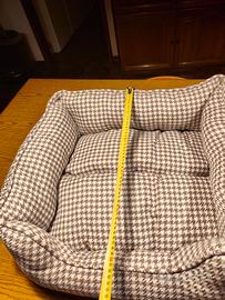 Vendo cuccetta per cane o gatto con fantasia a quadri bianchi e tortora, cuscino reversibile. Praticamente Nuova, la mia gatta non la vuole usare, dorme con il cane.