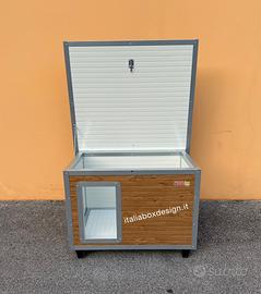 Cuccia coibentata si intende che pareti tetto e fondo della cuccia sono realizzate in pannelli compositi in laminato esternamente e poliuretano espanso internamente che funge da isolamento termico ed acustico.